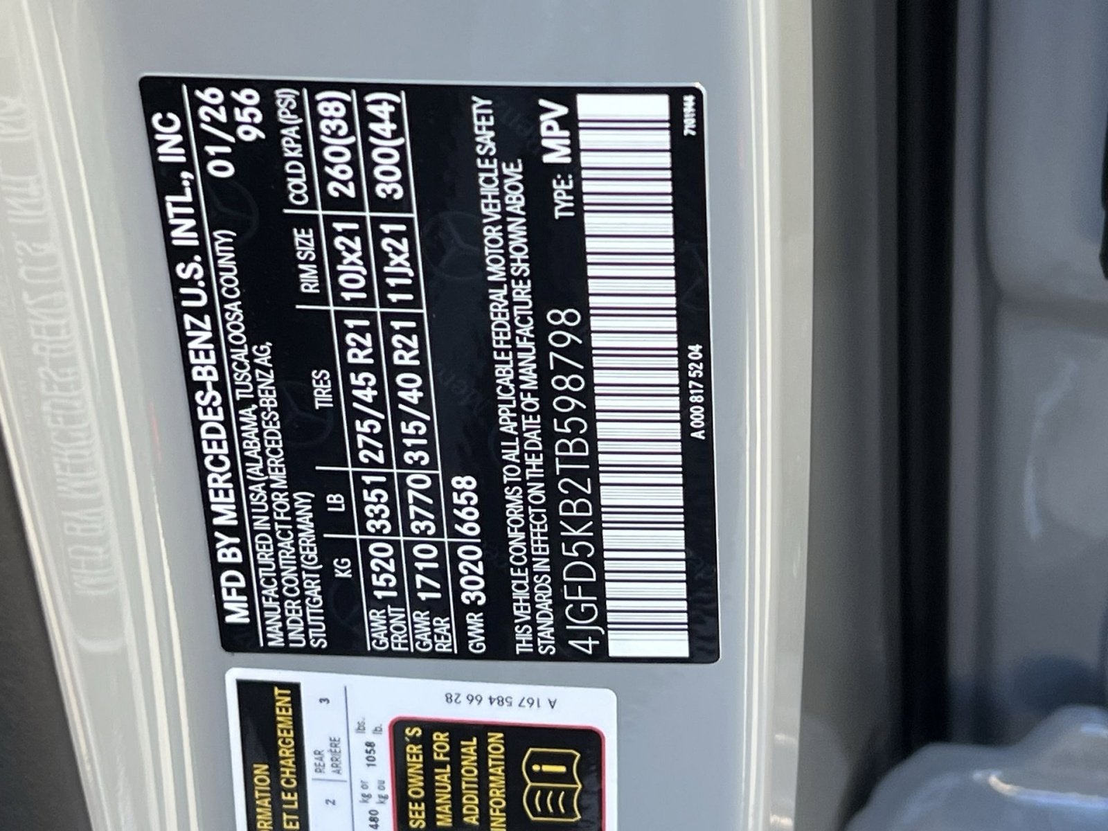 - Front Tire Size: P275/45HR21