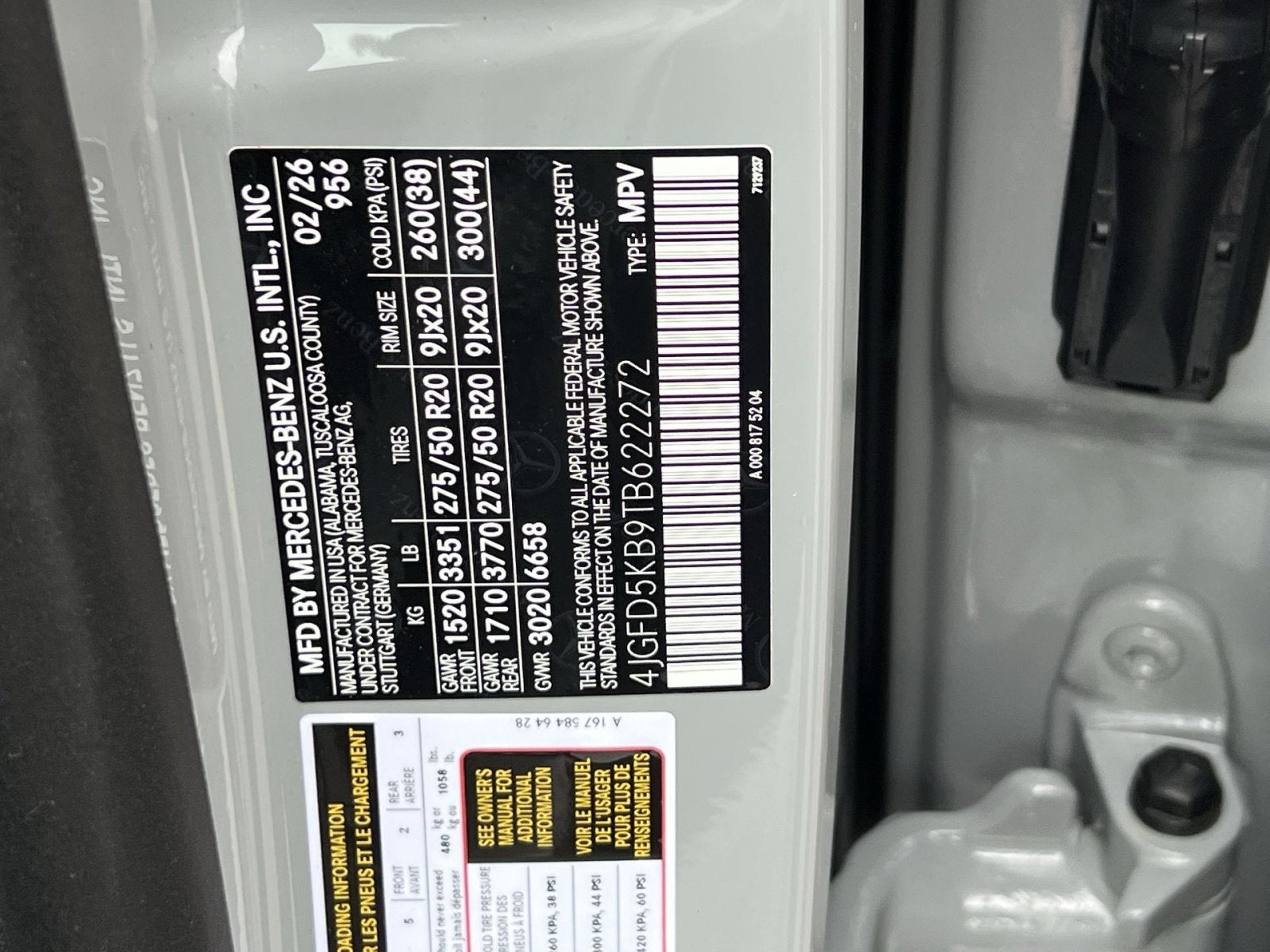 - Front Tire Size: P275/50HR20