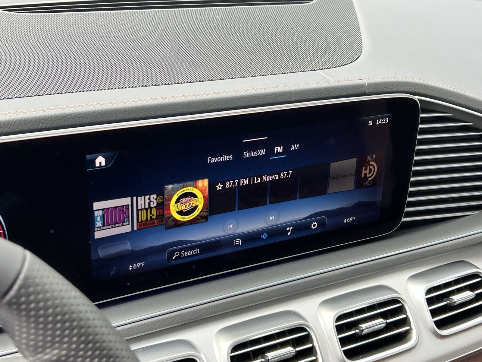 - Radio: Burmester Surround Sound System -inc: Dolby Atmos, music streaming, sound personalization, 13 speakers, 590-watt amplifier, Frontbass technology, voice control w/Natural Language Understanding, wireless Apple CarPlay and Android Auto, 12.3" media touchscreen display, MB navigation w/live traffic and map updates and SiriusXM radio