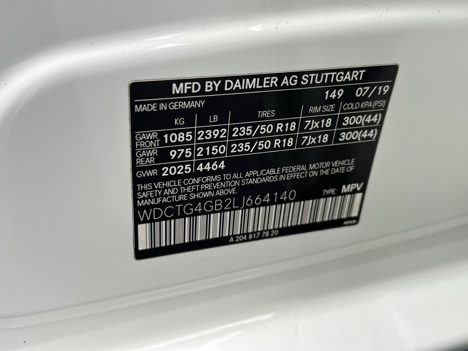 - Front Tire Size: P235/45WR19